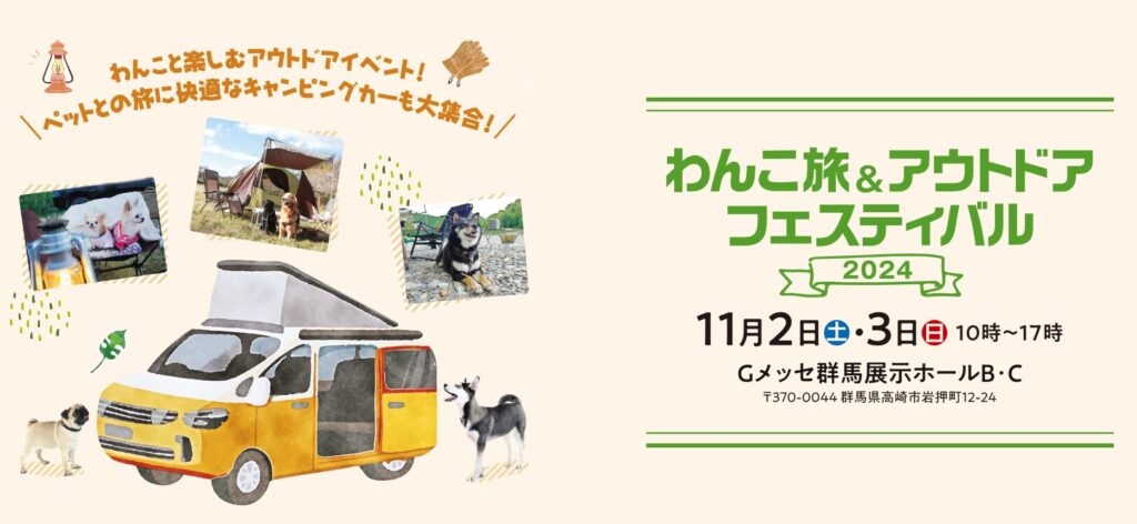 • 出展のお知らせ!わんこ旅&アウトドアフェスティバル。11月2日(土)・3日(日) 10:00~17:00