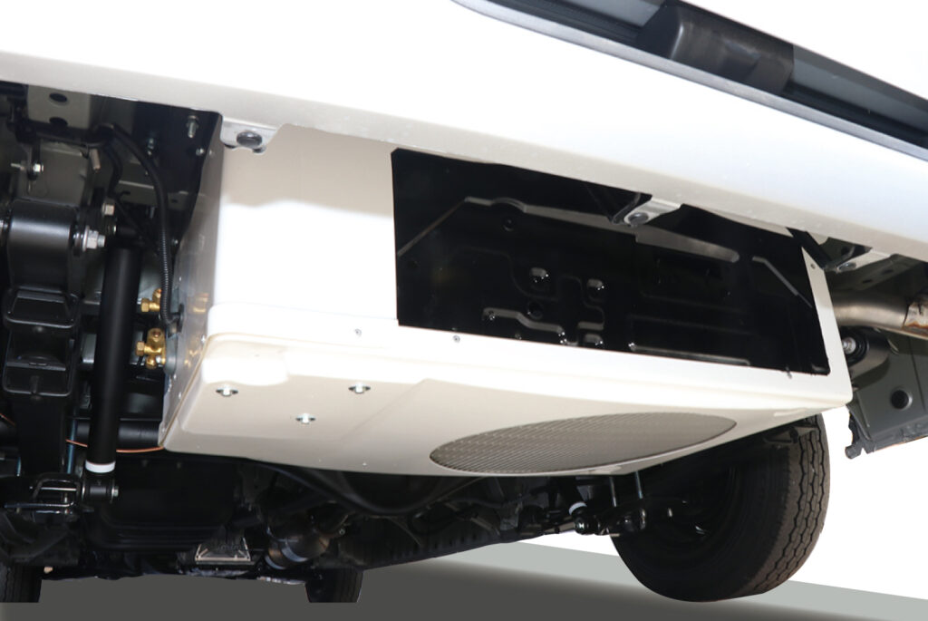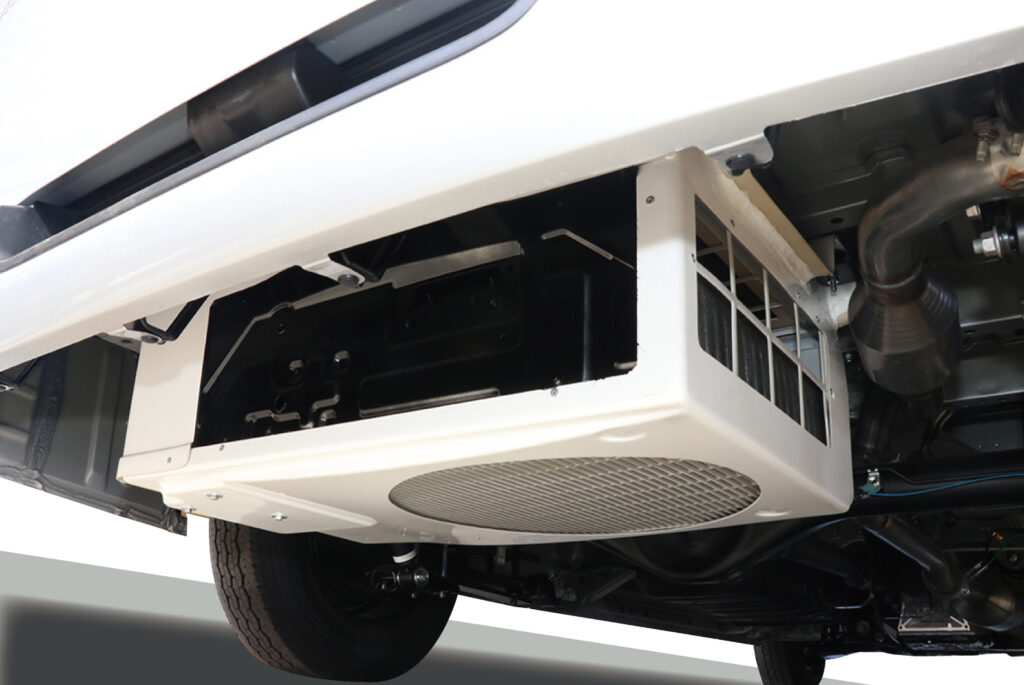 振動による緩み防止の為、一部のビスをリベットに打ち直しています。 さらに、防錆対策として室外機の組み替え時に防錆加工を施し、フィンのあるコア部分には「MCP特殊コーティング」を施し、筐体にはFRPのほか高耐食メッキ鋼板を使用し、車載を前提とした防錆対策を施しています。