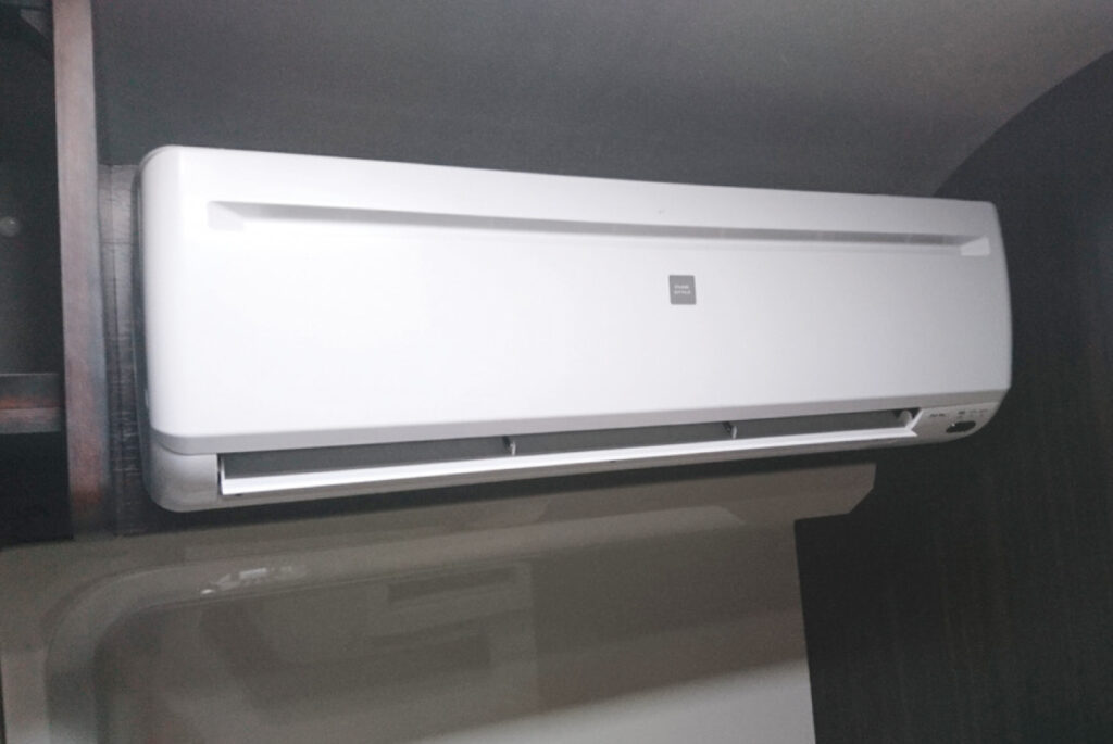 家庭用エアコンで重要なことの一つとして、室外機で行う排熱があります。これが効率よく行えないと、冷房効率の低下や機器の負担増による機器寿命の低下にも繋がります。室外機を横置きにすることで、排熱は下向きとなり、排熱抵抗を可能な限り低く抑えてます。