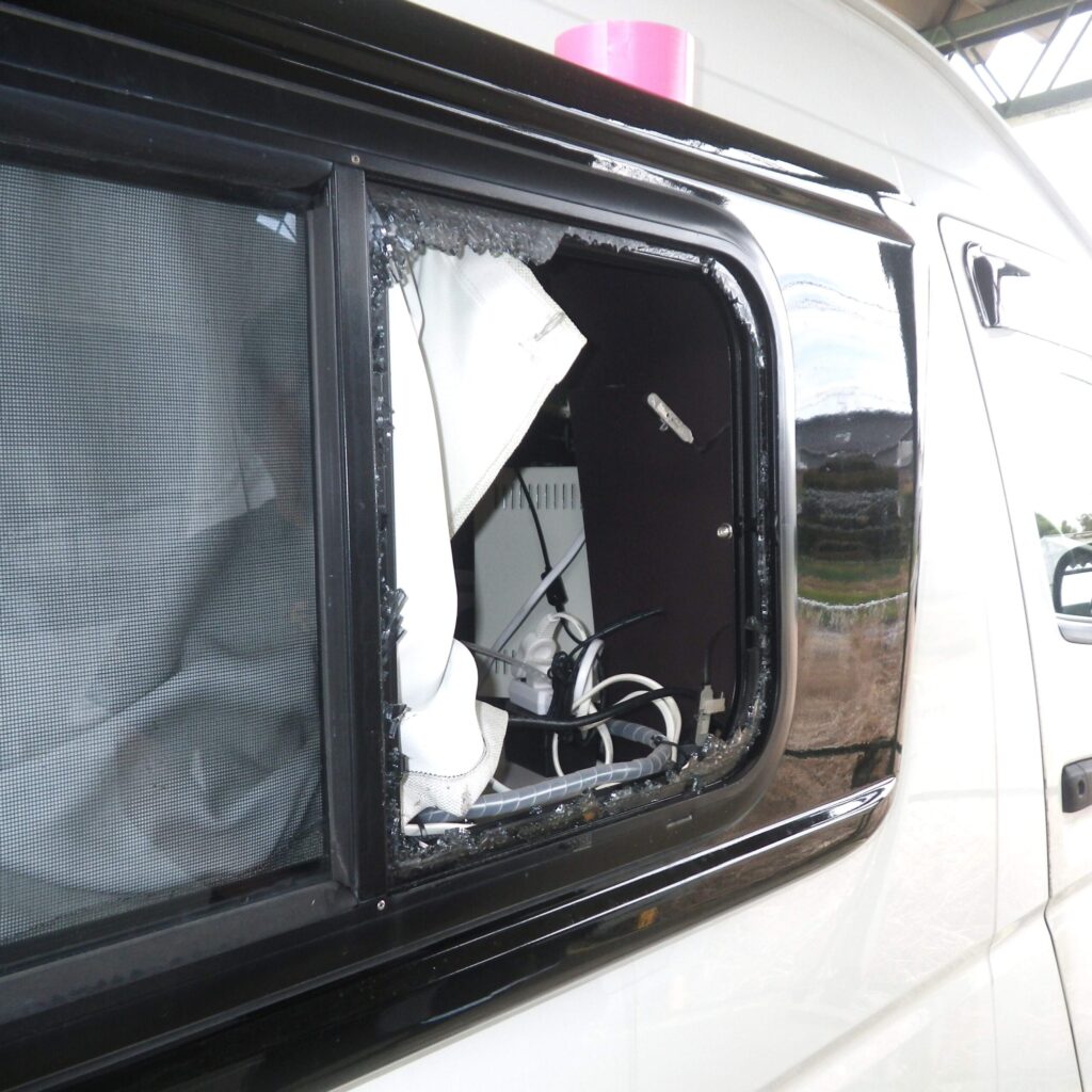 先ずは割れたガラスをきれいに取り除かなければなりません。