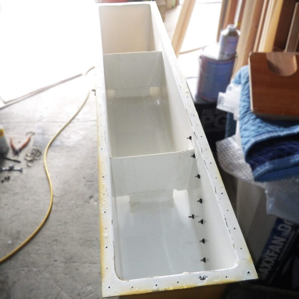 経年劣化により接着が剝がれたことが分かり、タンクをきれいにして再接着とビス固定。