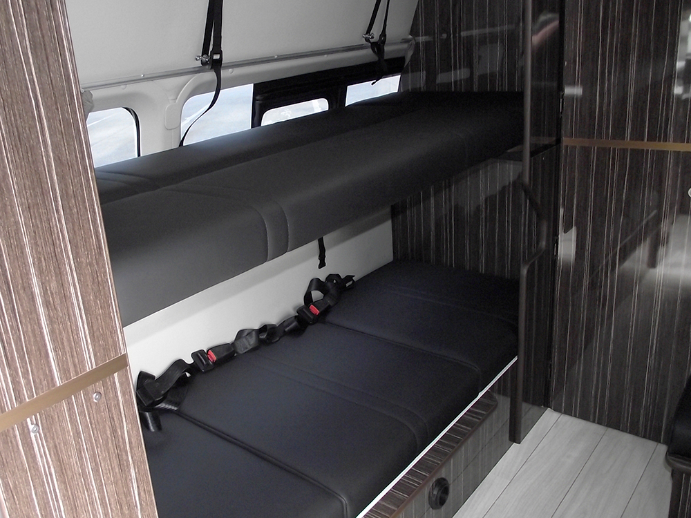 • TOYOTA HIACE H200をキャンピング架装(リメイク)しました。リア2段ベッドモデル。